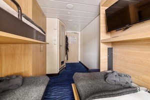 Relaxed and refined, our Arctic Superior cabins offer a warm welcome after a day spent exploring. Expect modern furnishings, tea and coffee-making facilities, and large windows that frame the scenery. Flexible sleeping arrangements for certain cabins and practical features make these a popular choice for couples, families, and solo travellers alike.