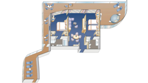 A premium stateroom category featuring our best located Mini-Suite staterooms, as well as the great amenities found in all Mini-Suites — plus premier dining benefits and luxurious perks. Each night, enjoy Reserve Dining, an exclusive dining area featuring expedited seating with no wait, additional menu options, dedicated wait staff and tableside preparations. Other amenities include priority embarkation and disembarkation, a complimentary one-time wine set-up and so much more!^