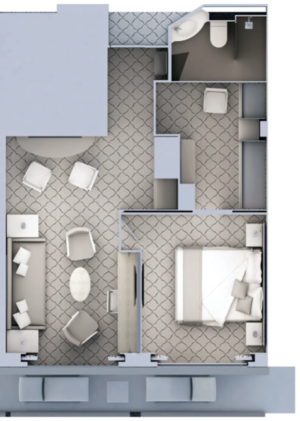 With a room configuration that favors watching the sun rise from the comfort of your bed and losing yourself in the mesmerizing seascapes, this suite is the perfect answer to adventure cruising. A large walk-in wardrobe and an expansive living room make the Medallion Suite your home away from home on the high seas. Medallion Suites accommodate three guests.