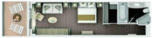 The Deluxe Veranda Suite offers a comfortable living space, close to the heart of the ship. With its preferred midship location and all the comfort and attention to detail that you can expect aboard, the Deluxe Veranda Suite is the savvy traveler’s paradise—both inside and out. Elegant decor, a stunning marble bathroom, and an ample seating area make this a cozy home away from home. But perhaps this suite’s finest asset lies just outside, as floor-to-ceiling glass doors open onto a private veranda, making every sunset feel as if it is yours alone.