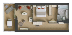 Located on the upper deck and offering spectacular sunset views, the Superior Veranda Suite has all the comforts and luxury that you can expect aboard. A comfortable living space, attention to detail, and a generous expanse of amenities make this stunning suite a cozy home while on the seas. But perhaps this suite’s finest asset lies just outside, as floor-to-ceiling glass doors open onto a private veranda, making every sunset feel as if it is yours alone.