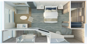 The Royal Suite really is fit for a king! Among our largest on offer, not only does this suite have a private, spacious veranda, but the privileged location at the back of the ship means that you’re sure to get the best views there are! Expect all your favorite comforts inside: a large ocean-view bathroom with whirlpool bath and walk-in shower, state-of-the-art entertainment system, and plush bedding ensure the best night’s sleep you’ve ever had.